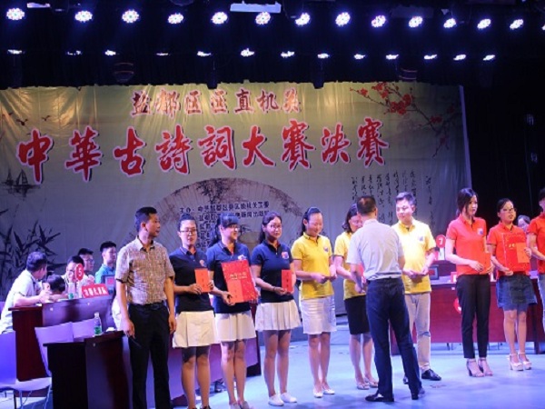 由鹽都區(qū)委區(qū)級機關(guān)工委、區(qū)文廣新局聯(lián)合舉辦的區(qū)直機關(guān)中華古詩詞大賽決賽,于7月7日下午在鹽都區(qū)文化館百姓劇場舉行。