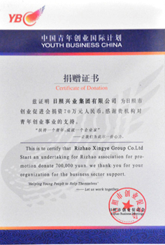 ·2010年,中國(guó)青年創(chuàng)業(yè)國(guó)際計(jì)劃捐贈(zèng)證書
