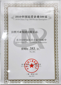 ·2010年8月,興業(yè)集團(tuán)在2010中國(guó)民營(yíng)企業(yè)500家中列383位