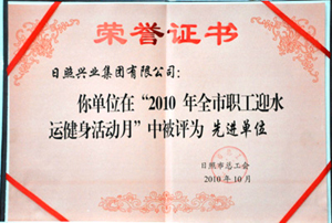 ·2010年10月,興業(yè)集團(tuán)在“2010年全市職工迎水運(yùn)健身活動(dòng)月”中被日照市總工會(huì)評(píng)為先進(jìn)單位